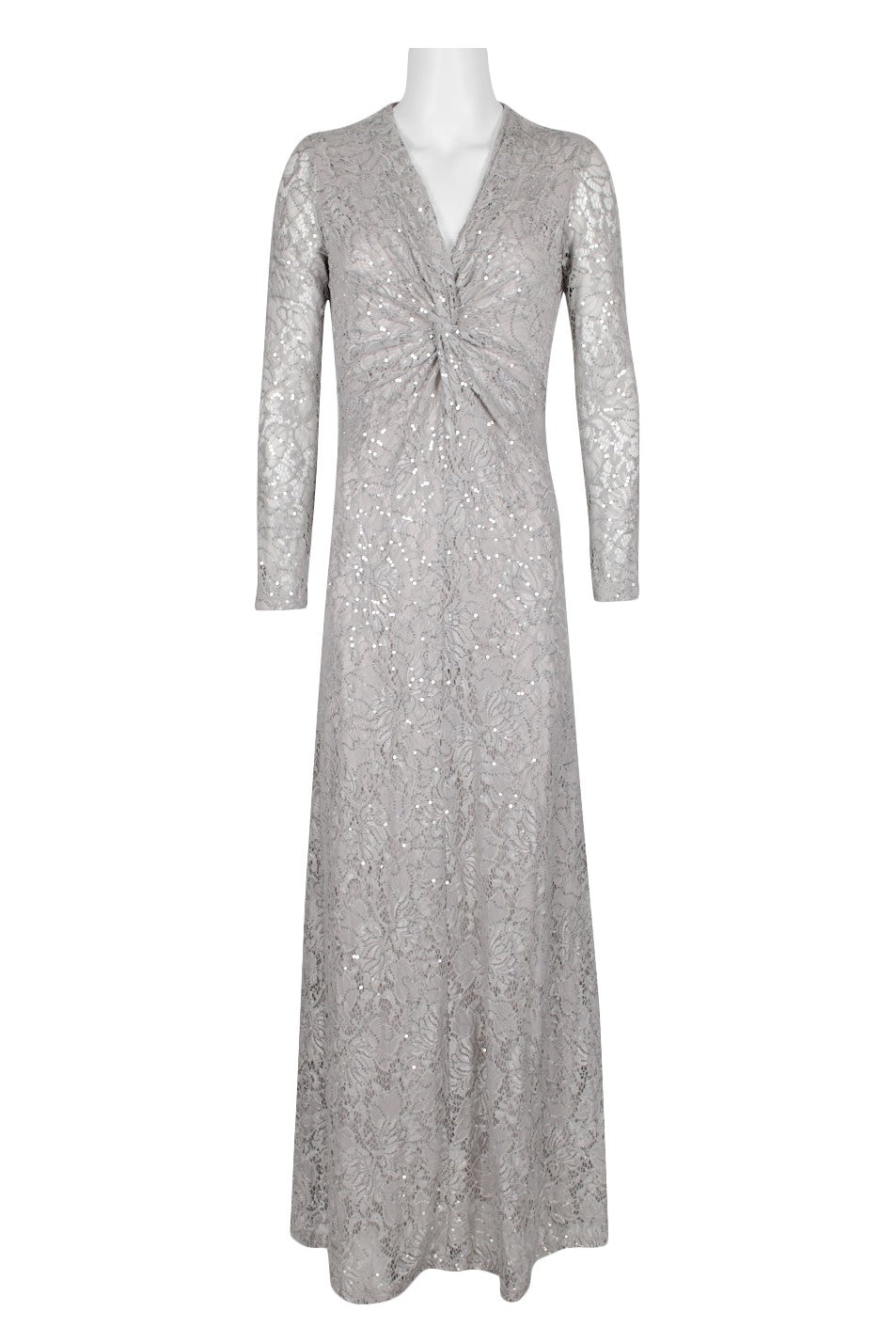 Tahari ASL Twist Front V-Neck Long Sleeve Concealed Zipper Back Sequined Lace Dress; Fabric: Sequin Lace (92% Nylon 8% Spandex) Lining (100% Polyester); Fabric Content: LINED